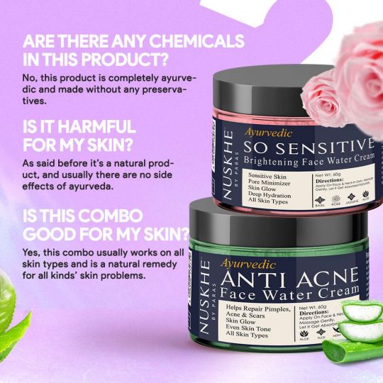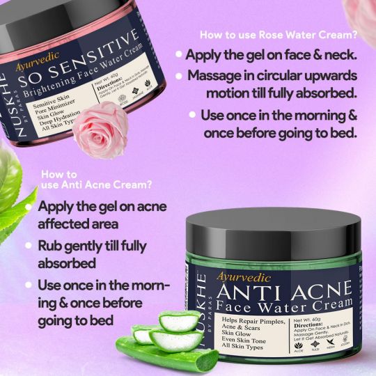 Nuskhe by Paras Skin glow Combo -Anti Acne and Rose Water Cream-60 Gram Each
