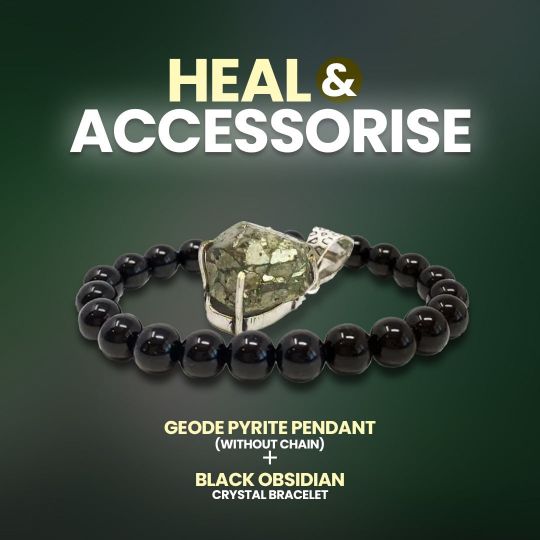 Heal Accessorise Pyrite Geode Pendant Black Obsidian Bracelet