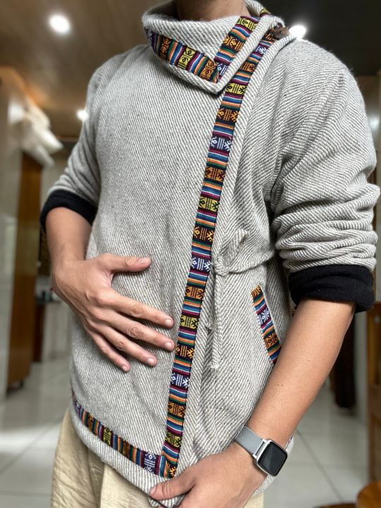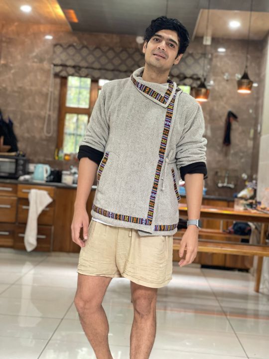 Light Grey Tibetan Asymmetrical Traditional Jacket
