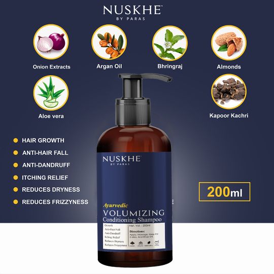 Nuskhe By Paras Ayurvedic Volumizing Onion Shampoo For Frizz Free Stronger Hair For Men Women 200 Ml