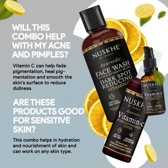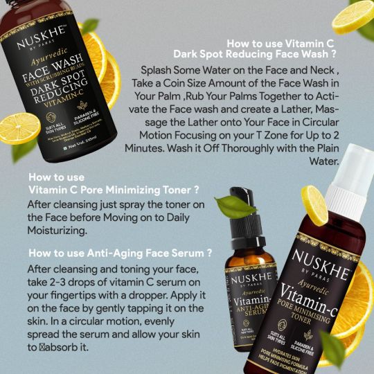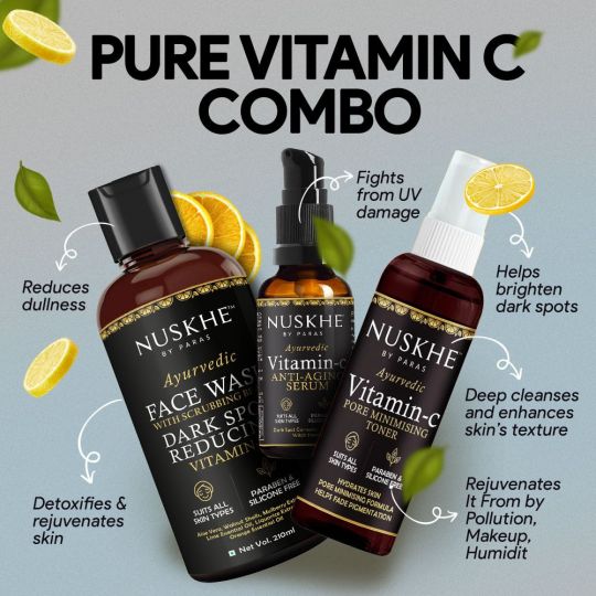 Nuskhe By Paras Pure Vitamin C Combo - Vitamin-C Face Wash, Toner and Anti ageing Serum (Unisex)
