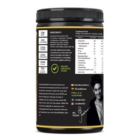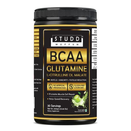 Studd Muffyn Bcaa Glutamine Green Apple For Muscle Immunity Fatigue Reduction 300 Gram