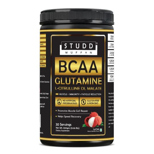 Studd Muffyn Bcaa Glutamine Lychee For Muscle Immunity Fatigue Reduction 300 Gram