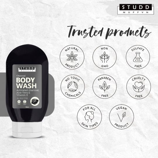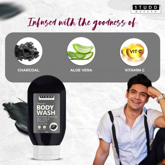 Studd Muffyn Charcoal Body Wash With Activated Charcoal Aloe Vera Vitamin E For Men And Women 100ml