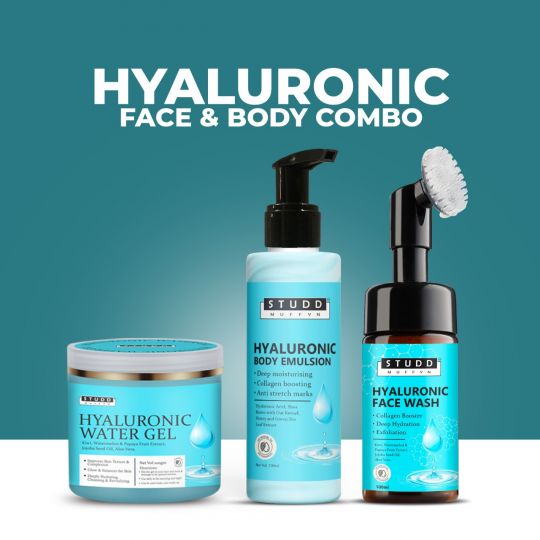 Studd Muffyn Hyaluronic Face And Body Combo For Men And Women Hyaluronic Gel 100 Gram Hyaluronic Face Wash 125 Ml And Hyaluronic Body Emulsion 125ml