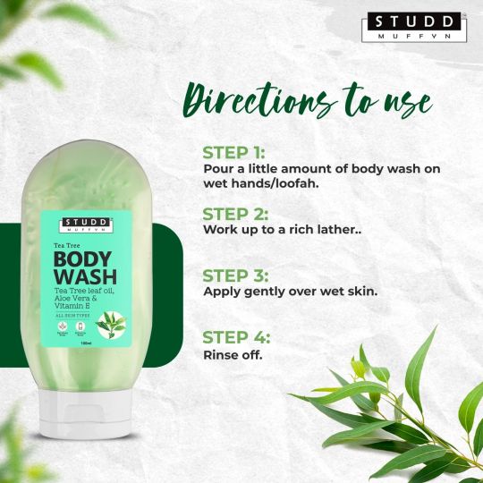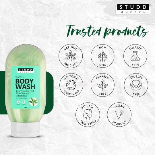 Studd Muffyn Tea Tree Body With Tea Tree Leaf Oil Aloe Vera Vitamin E For Men And Women 100ml