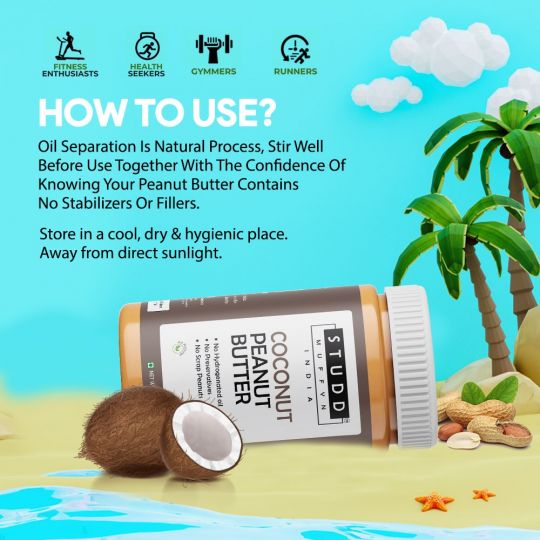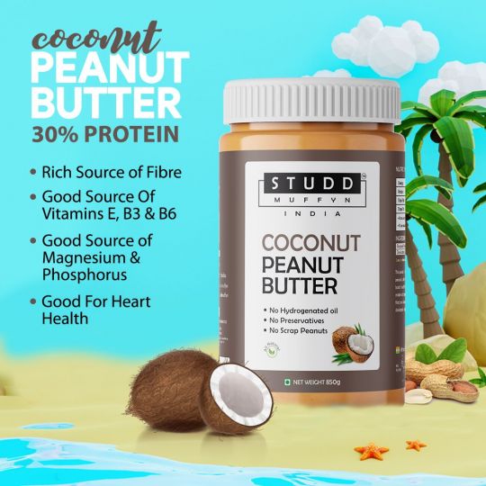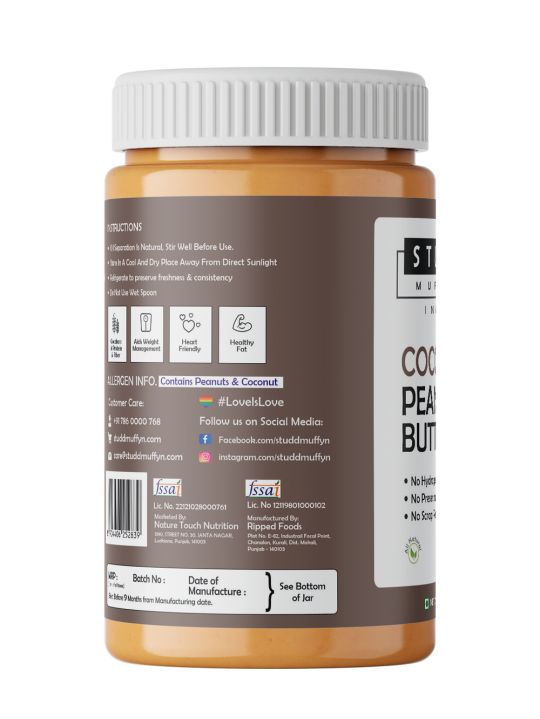 Studdmuffyn All Natural Coconut Peanut Butter 850 Gm 25 Protein Pure Honey Gluten Free Cholesterol Free