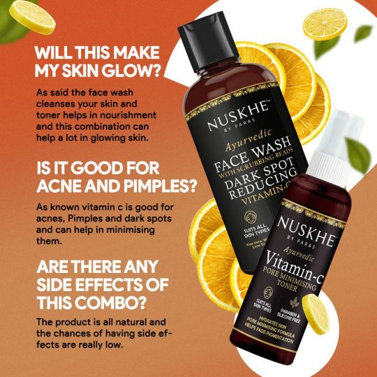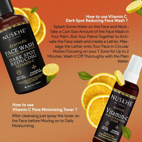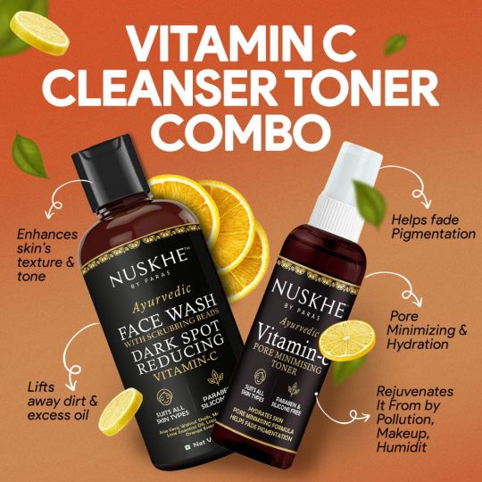 Vitamin C Cleanser Toner Combo Nuskhe By Paras Ayurvedic Vitamin C Dark Spot Reducing Face Wash And Vitamin C Pore Minimizing Toner Unisex