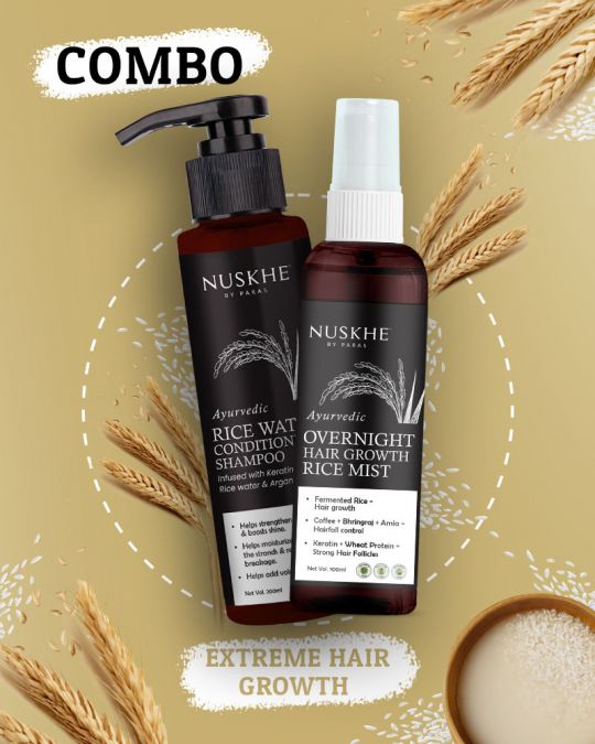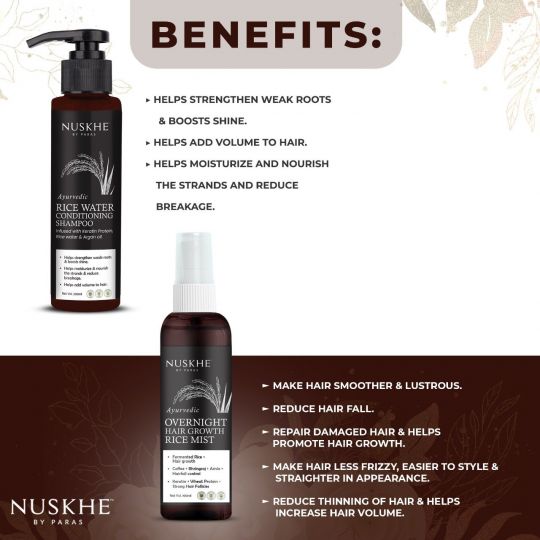 Anti Dandruff Shampoo, Anti Hair Fall And Thinning Solutions, Anti Hair Fall Combo, Anti Hairfall Combo, Combo, Hair Growth Combo, Hair Solutions, Hair Thinning Solution, Nuskhe By Paras Rice Mist, Nuskhe By Paras Shampoo